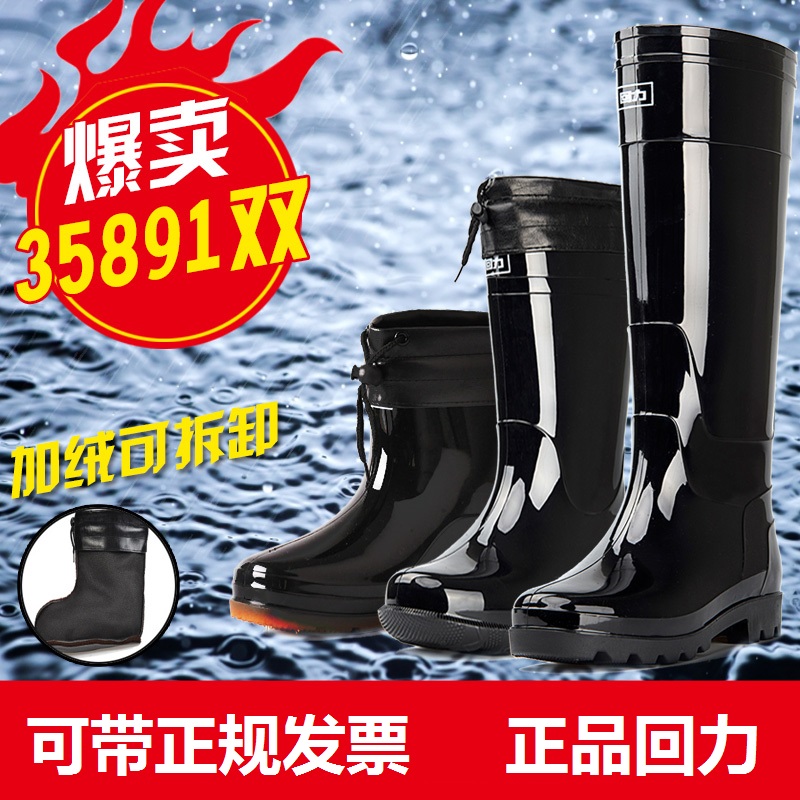 Back Force Rain Shoes Rain Boots Man High Drum Middle Cylinder Short Silo Plus Suede Warm Non-slip Cotton Glue Shoes Water Boots Shoes Waterproof Shoes