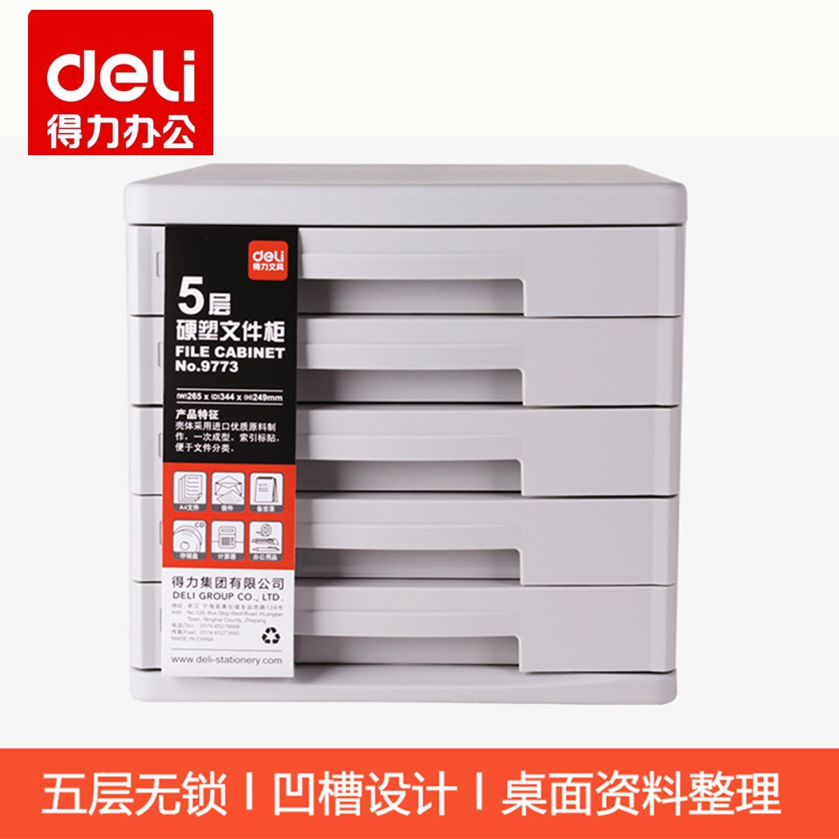 Deli 9773 file cabinet Desktop data finishing storage cabinet Plastic chest of drawers 5 layers without lock black