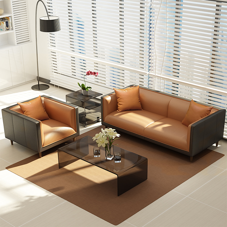 Designer fashion office sofa coffee table combination simple and modern reception and reception three-seat office leather sofa