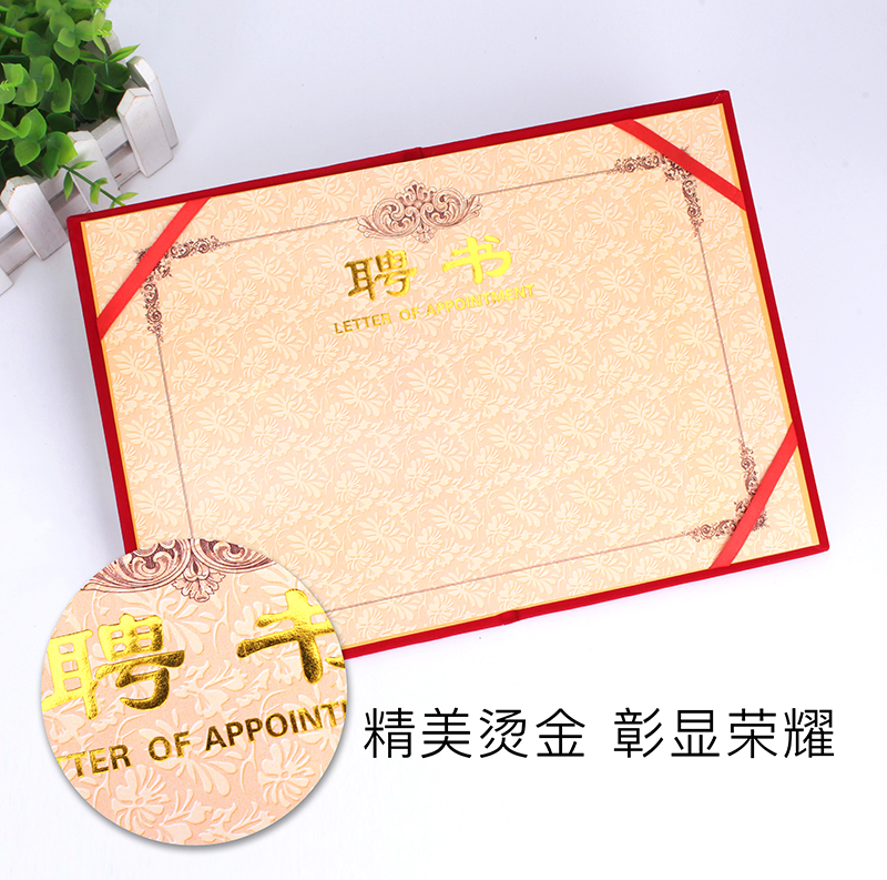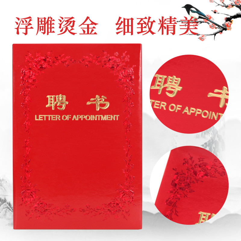 Kinds of red UV embossed paper Appointment letter cover customized certificate award-winning school company LOGO customized design A4 inner core 6K8K12K16K printing factory wholesale embossed bronzing