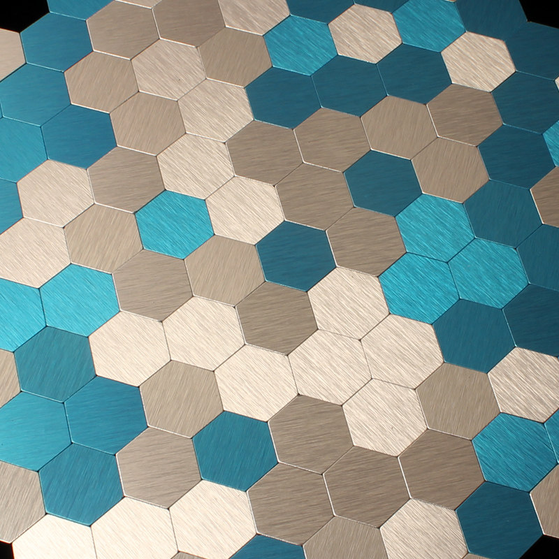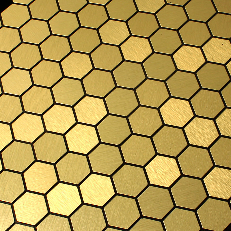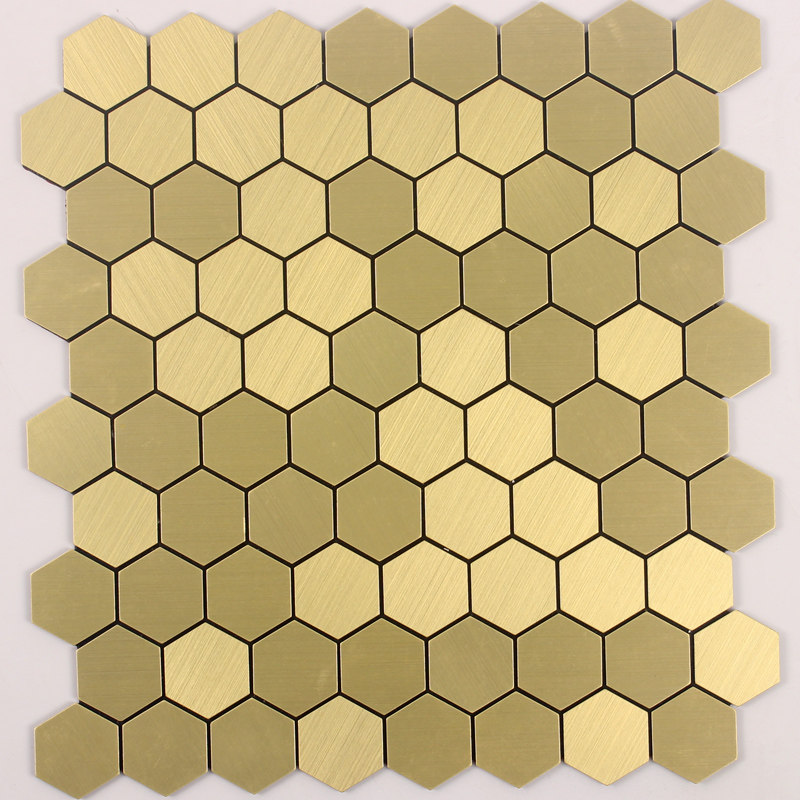 Seamless Hexagonal Metal Wire Drawing Aluminum Plastic Plate Mosaic Self-Adhesive Living Room Genguan TV Background Wall Tile Wall Sticker