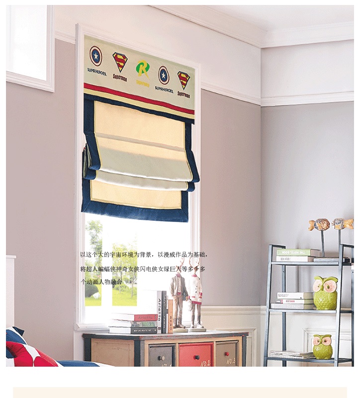 Boy children's room Cartoon curtains All shading Mediterranean Bedrooms Rome Lift curtain folding blinds Custom-Taobao