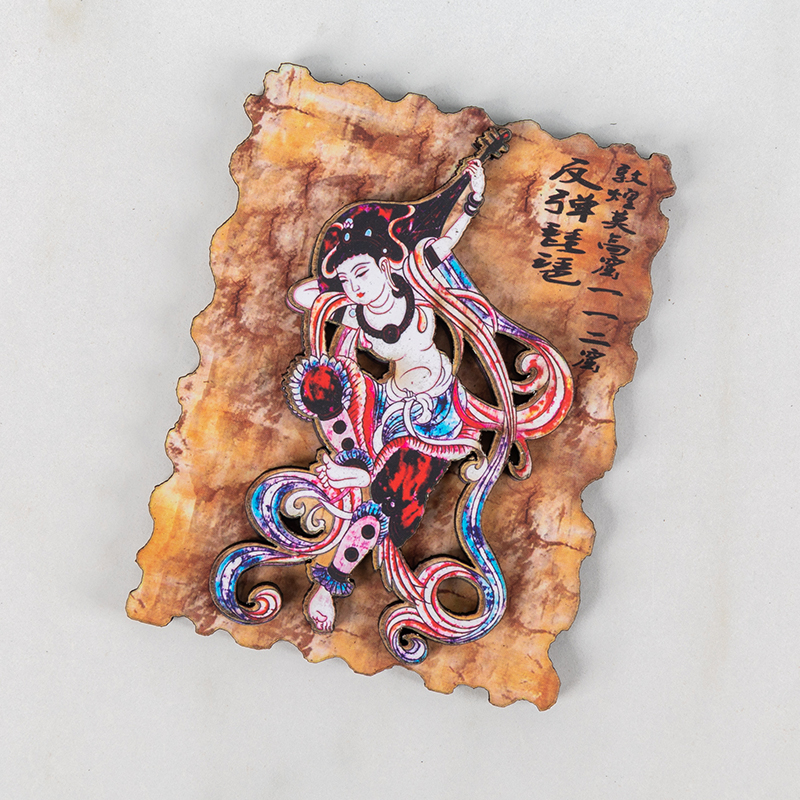 Wine red dark brown flower color cyan fluorescent green green blue light brown sky blue lake blue champagne color khaki color crescent spring rebound Pipa 1 Hu Xuan dance Mogao Grottoes panorama rebound 321 Cave Shuangfeitian 321