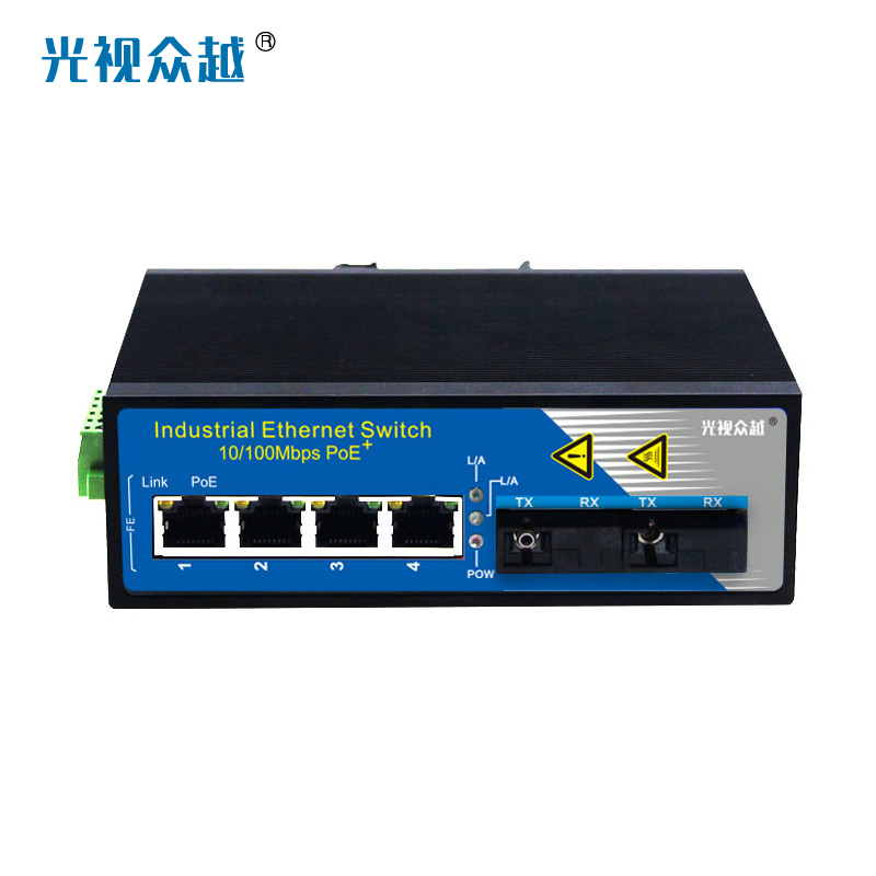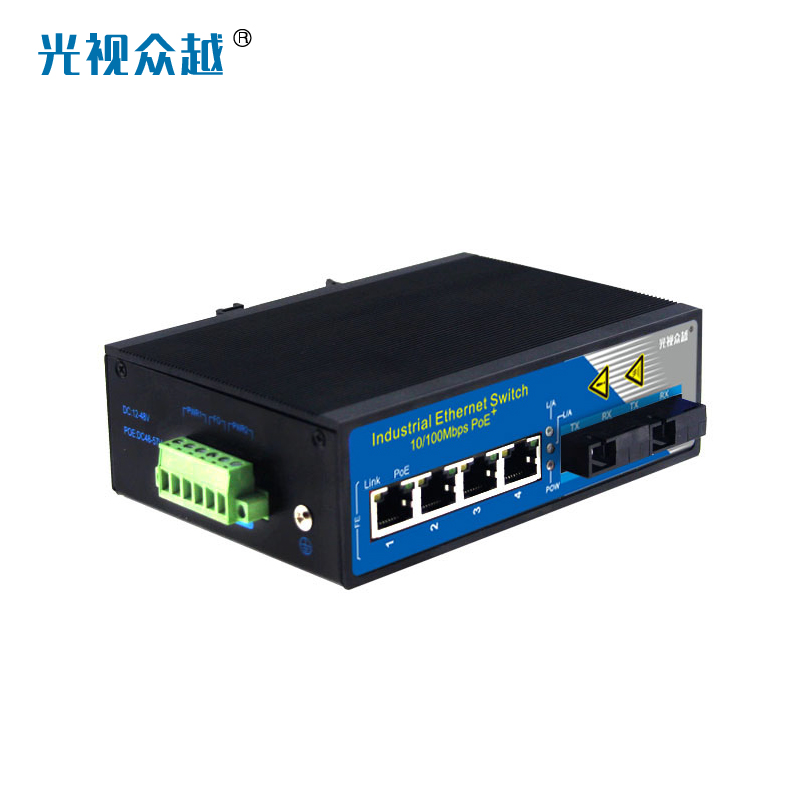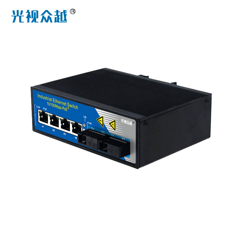 Industrial grade 100 M 2 optical 4 electric transceiver single mode single fiber two optical 4 electric cascade DIN redundant rail switch
