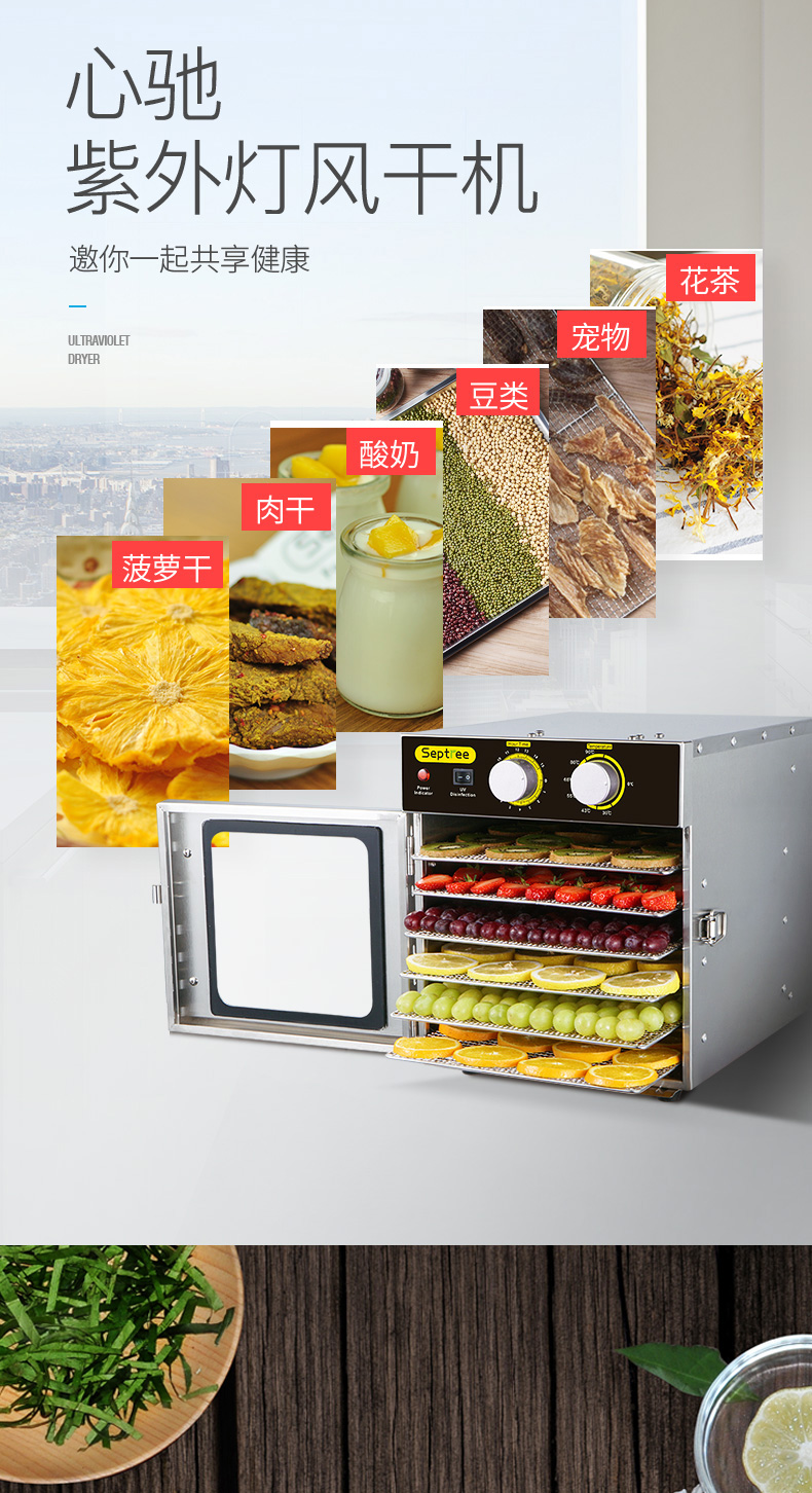 Cardigan Dry Fruit Machine Fruit Dryer Food Home Pet Snack Meat Air-dry Case UV Disinfection Machine Small