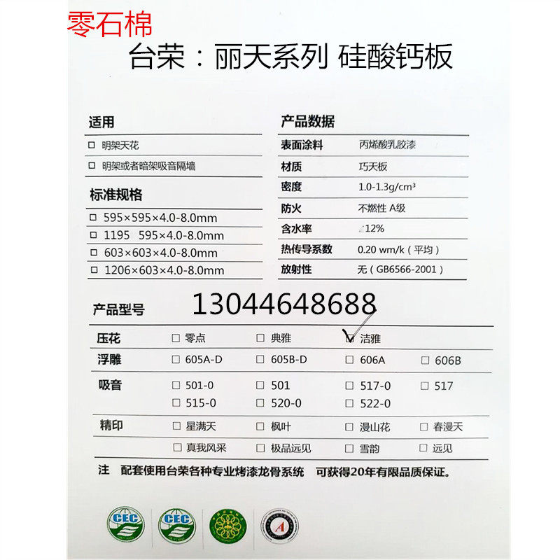 Tairong Calcium Silicate Board Litian Suspended Ceiling Ceiling Ceiling cement Pressure plate Anti-subsidence embossed embossed Finely Printed Skillet