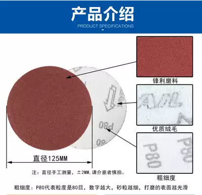 Flocking brushed disc sandpaper sheet 5 inch 125mm grinding sandpaper machine sandpaper polishing sandpaper cloth sticky suction cup