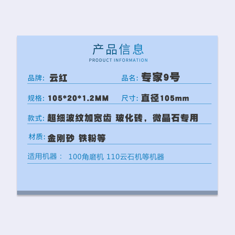 Yunhong 105 expert No. 9 ultra-fine corrugated diamond vitrified cutting blade microcrystalline ultra-thin dry-cut tile saw blade