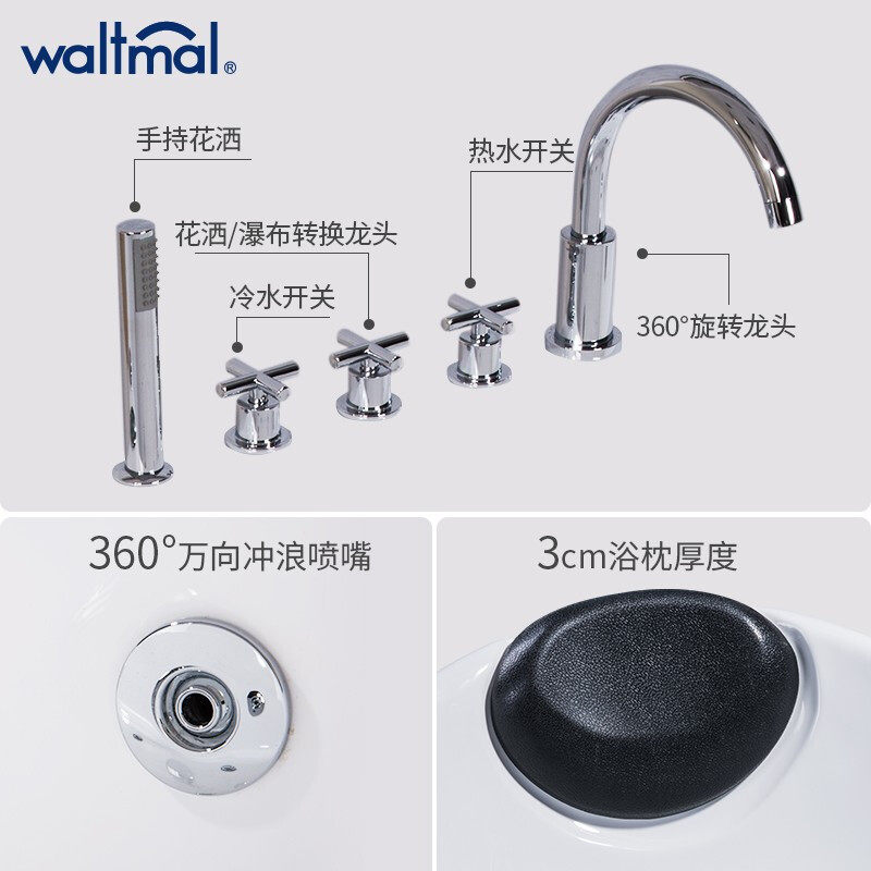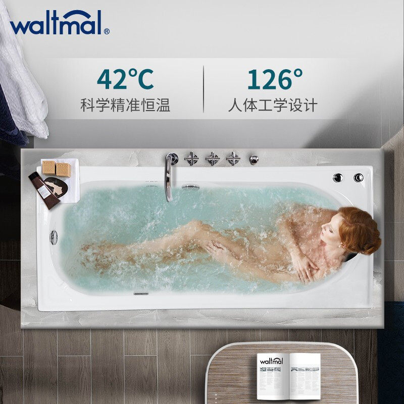 Watma Bathtub Acrylic Embedded Bath Single Small Household Type In-line Thermostatic Surfing Massage Tub Hydrotherapy
