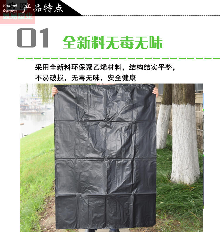 Black thickened extra thick large garbage bag property hotel sanitation flat mouth large garbage bag large size mite removal plastic bag