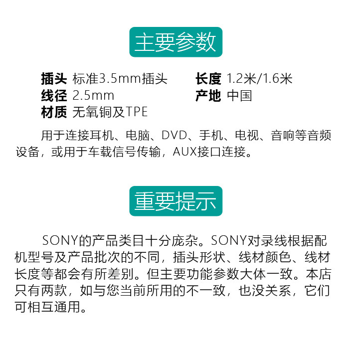 Applicable SONY Sony MDR-1ADAC connecting XB950BT XB950BT 100ABN public to the recording line AUX audio line
