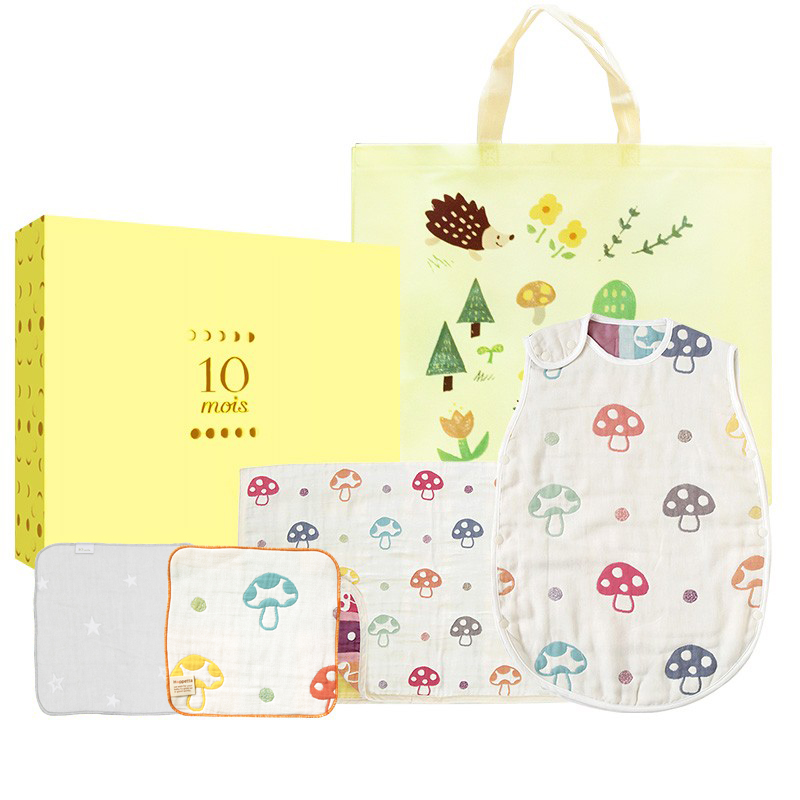Japan Hoppetta baby sleeping bag mushroom sleeping bag baby lid quilt cover blanket handkerchief set 4 pieces set gift box