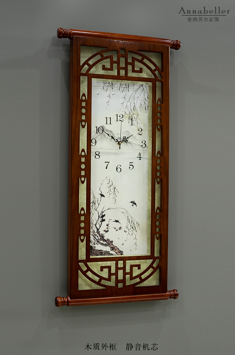 New Chinese Living Room Cross Section Hanging Bell Solid Wood Retro Clocks and watches Home TV Background Chinese Wind Decorative Classical clock