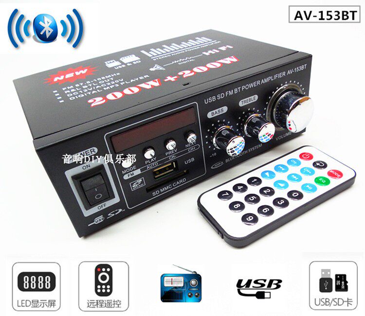 Mini small utilitany machine speaker power amplification card U disc radio DC 12 V 220V Bluetooth power amplifier