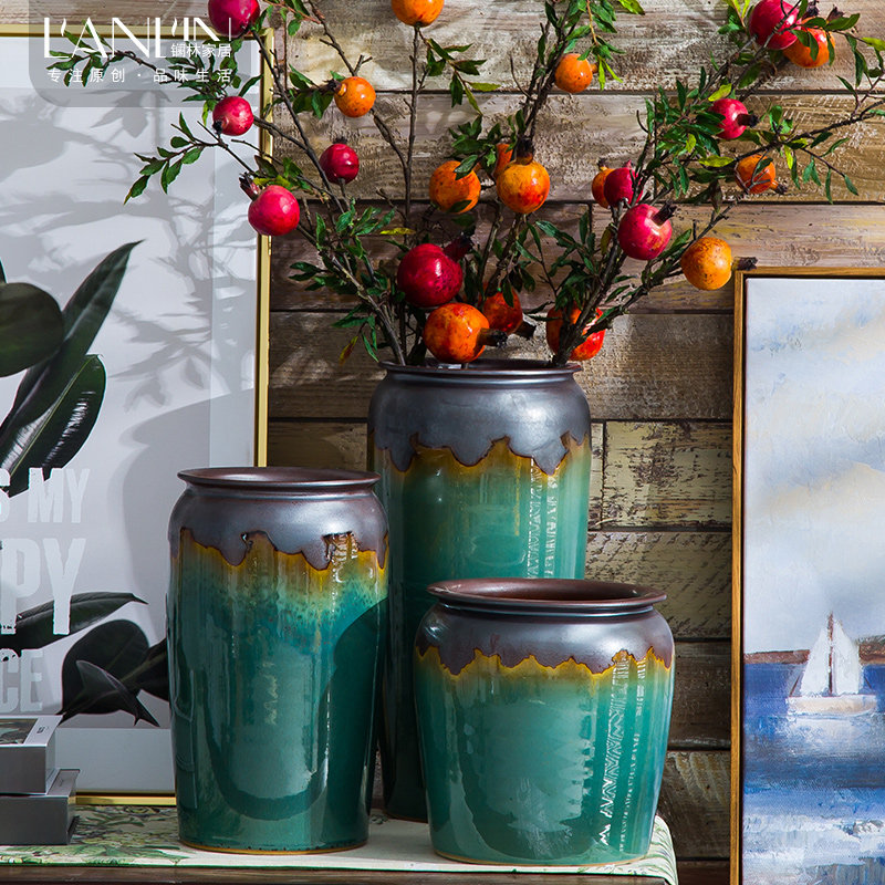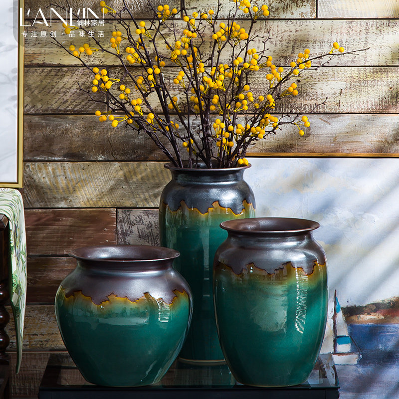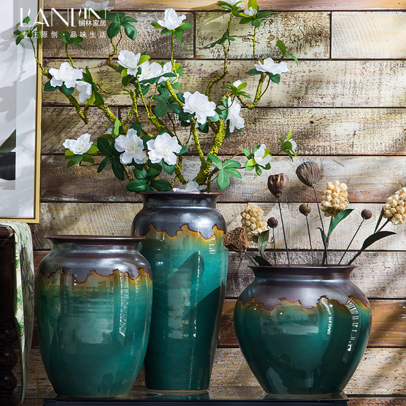 Jingdezhen Ceramic New Chinese vase swinging piece Living room inserted and dried flower rich and expensive bamboo planting multi-meat potted flower art floral