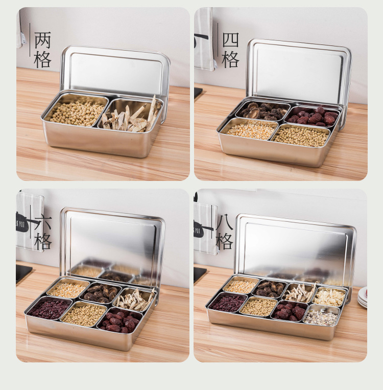304 Stainless Steel Japan Style Taste Case Suit Seasoned Jar Zo stock Remain box 6 g 8 lattice with lid seasoned box material cylinder