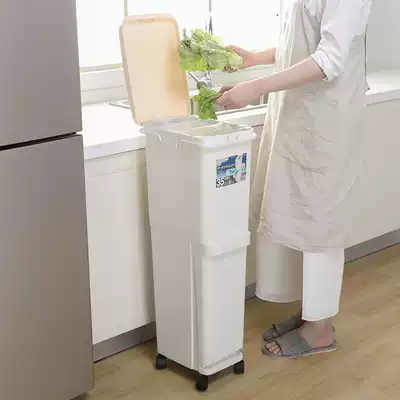 Japan imported kitchen double-layer classification trash can large household living room plastic with lid pulley mobile storage bucket