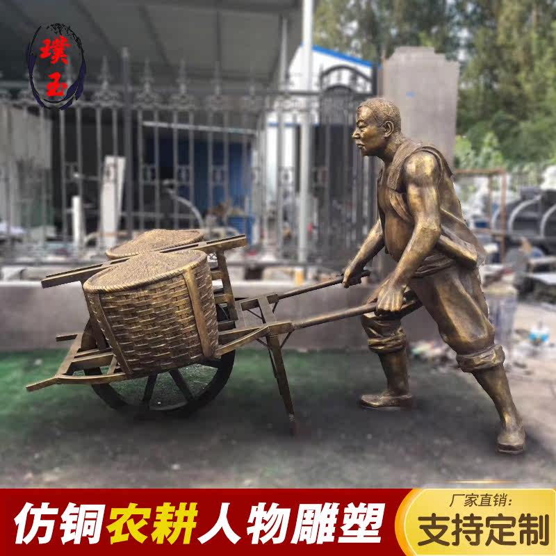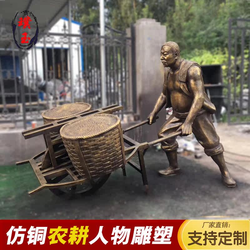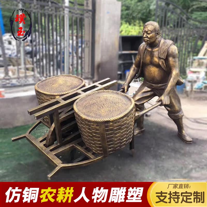 FRP Imitation Copper Figure Farming Series Old Man Cart Sculpture Grain Harvest Sculpture Pedestrian Street Landscape Ornament