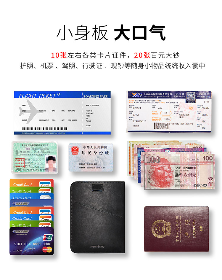 Cow - soldiers leather travel passport with ticket package passport for airfare package wallet