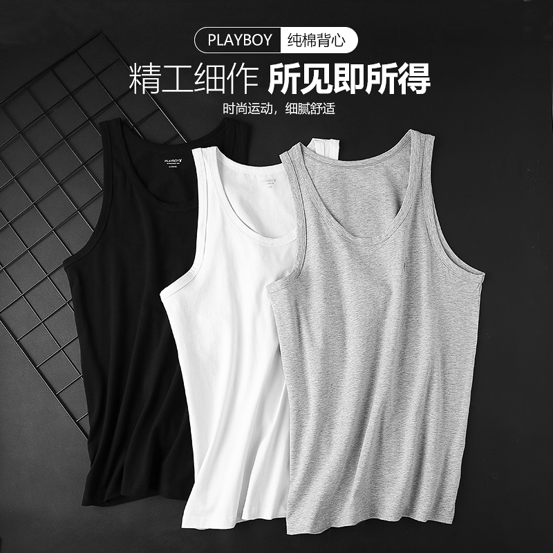 Floral Playboy men's vest men's pure cotton beating bottom cross bar to wear beating bottom tight harness movement Two-course summer tide