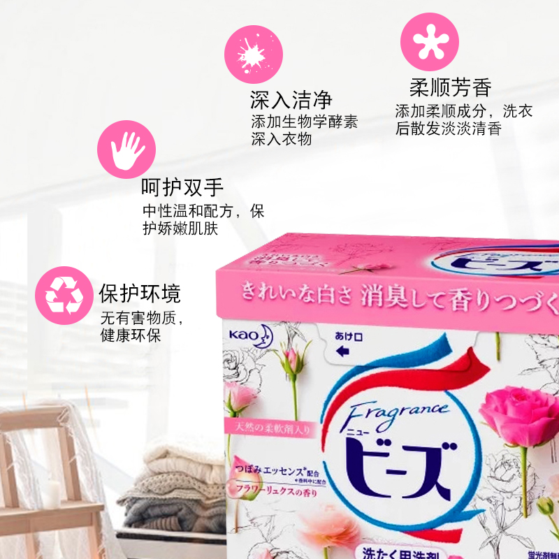 Kao washing powder Japanese original rose boxed low-foam decontamination laundry fragrance long-lasting fragrance machine hand washing