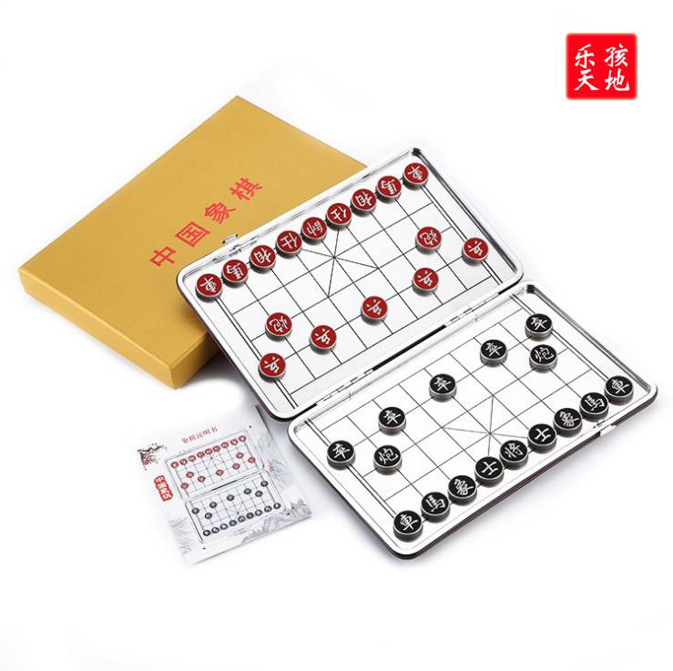 Aluminum alloy folding magnet elephant chess Gilded tourist chess Chinese chess is convenient to carry magnetic folding