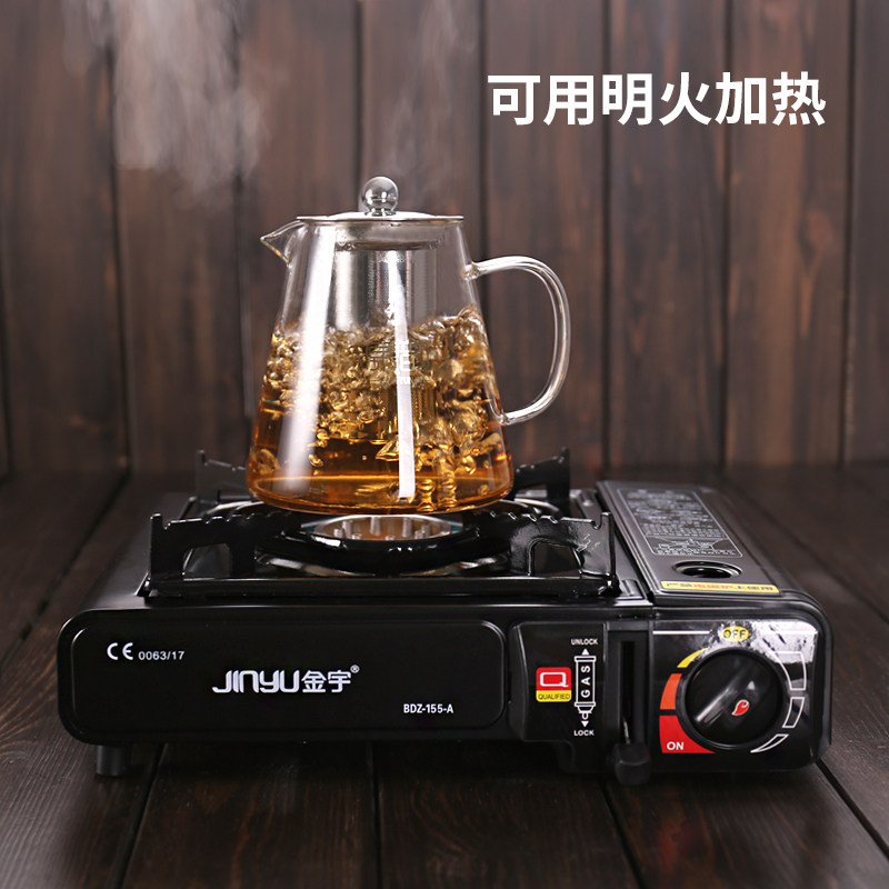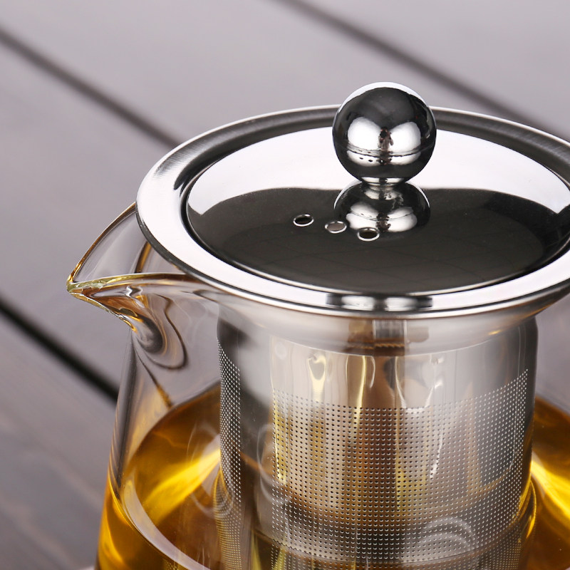Thickened heat-resistant glass teapot High temperature household simple stainless steel large transparent teapot set tea maker