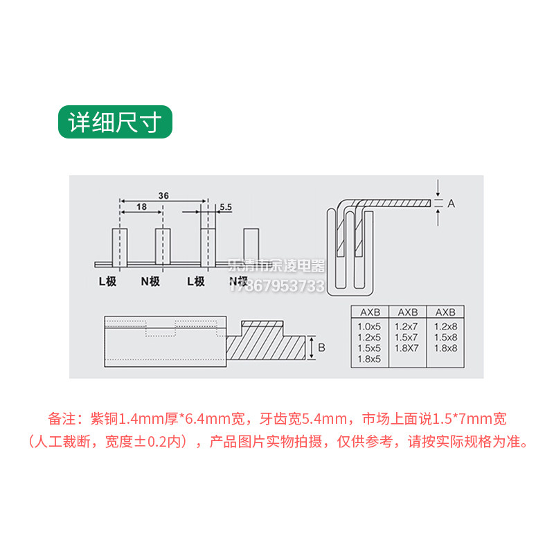 2P 63A busbar red copper 1 5 thick*7mm wide DZ47 busbar 2P busbar