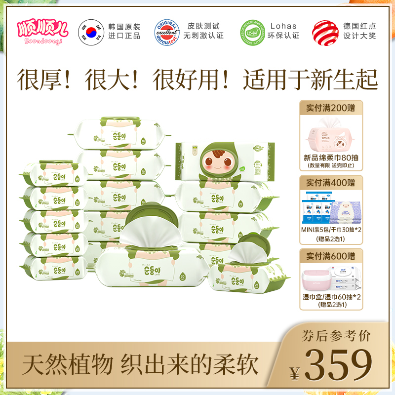 Cishun Son Korea Imported Baby Wet Wipes Household Newborns Hand Mouth Special Wet Tissue Size Combined Pack 16 Packs-Taobao