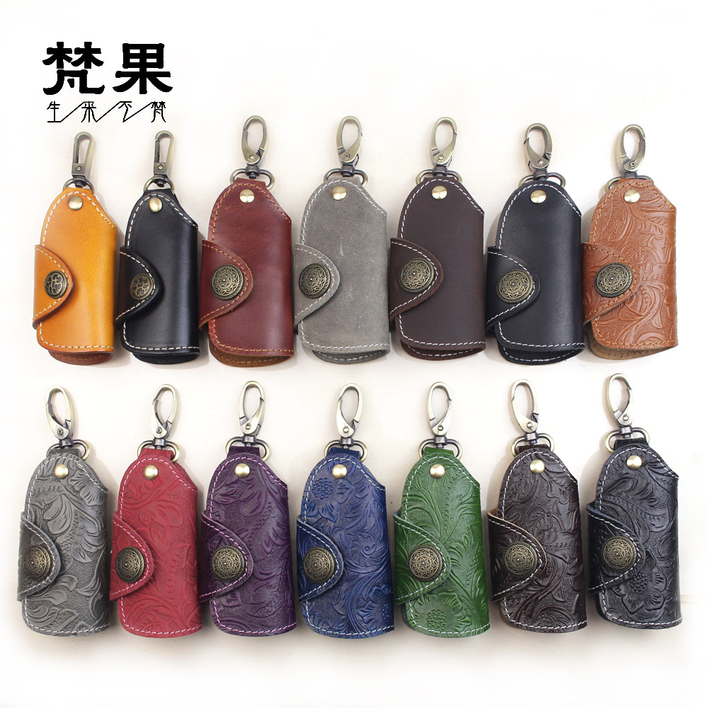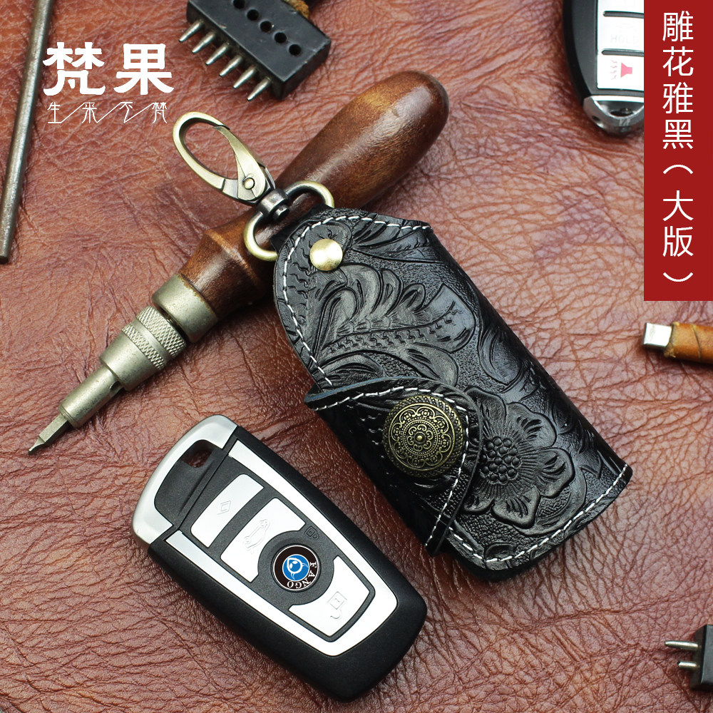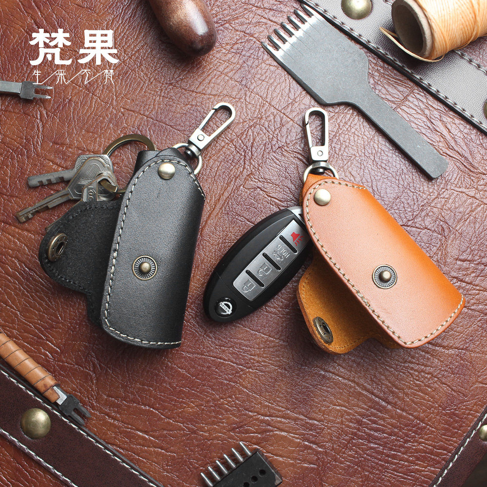 Genuine leather car key wrap head layer cow leather handmade retro key bag retro waist hanging car remote control leather cover universal