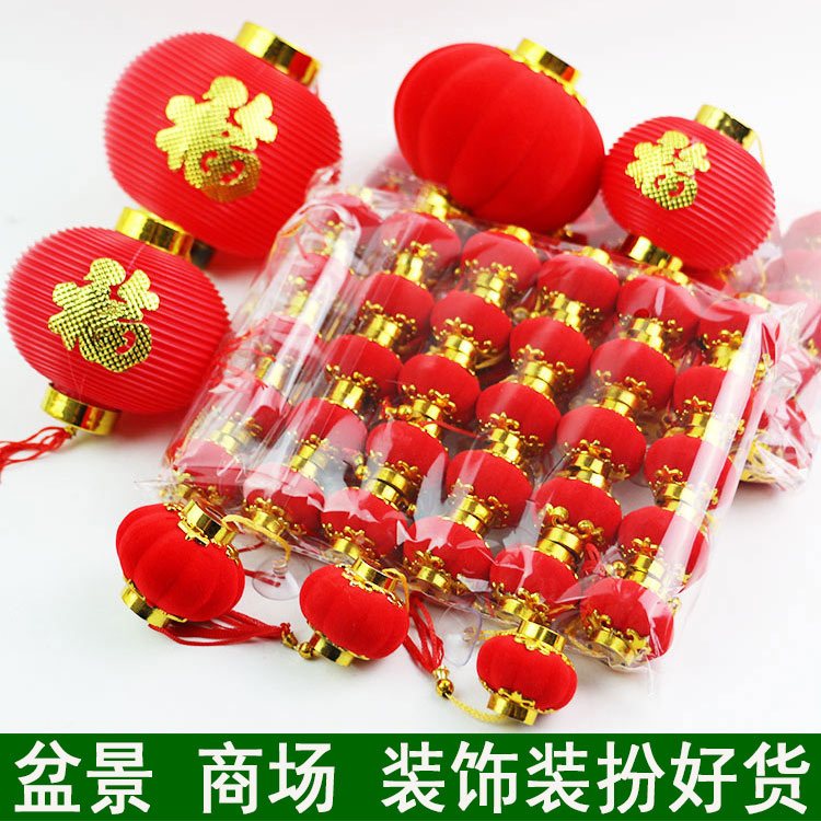 Flocking small lanterns hanging decorations bonsai balconies New Year holiday weddings Festive Decorations Round Winter Melon Big Red Lanterns