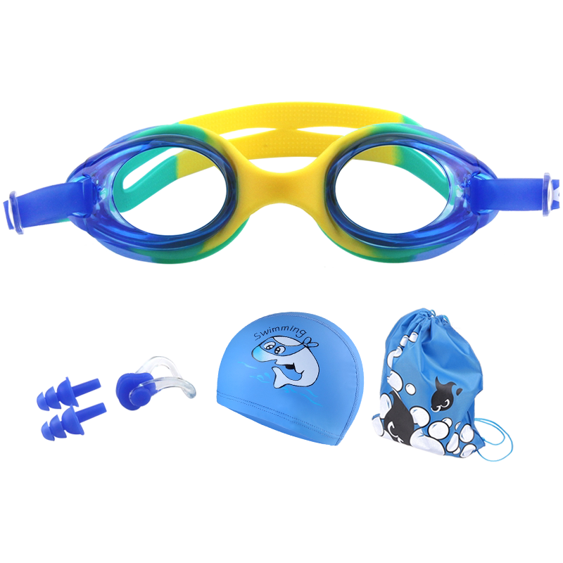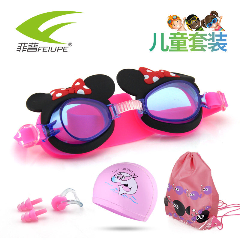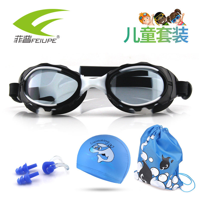 Feipu children's swimming goggles boys and girls professional large frame waterproof and anti-fog swimming glasses children's swimming cap storage bag set