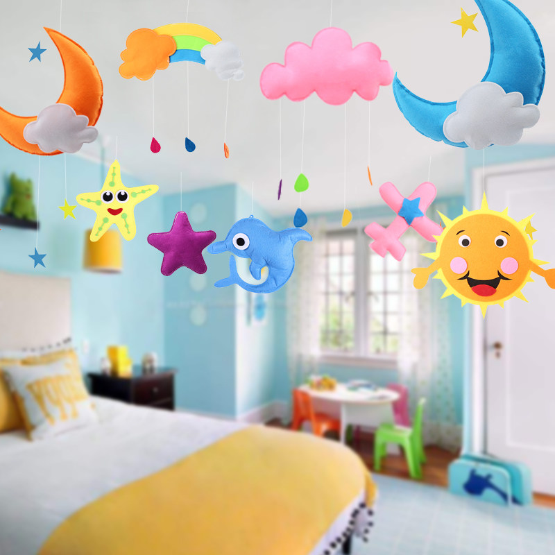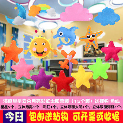 School kindergarten opening classroom corridor roof cloud raindrops hanging ornaments playground decoration Dolphin Moon ornaments
