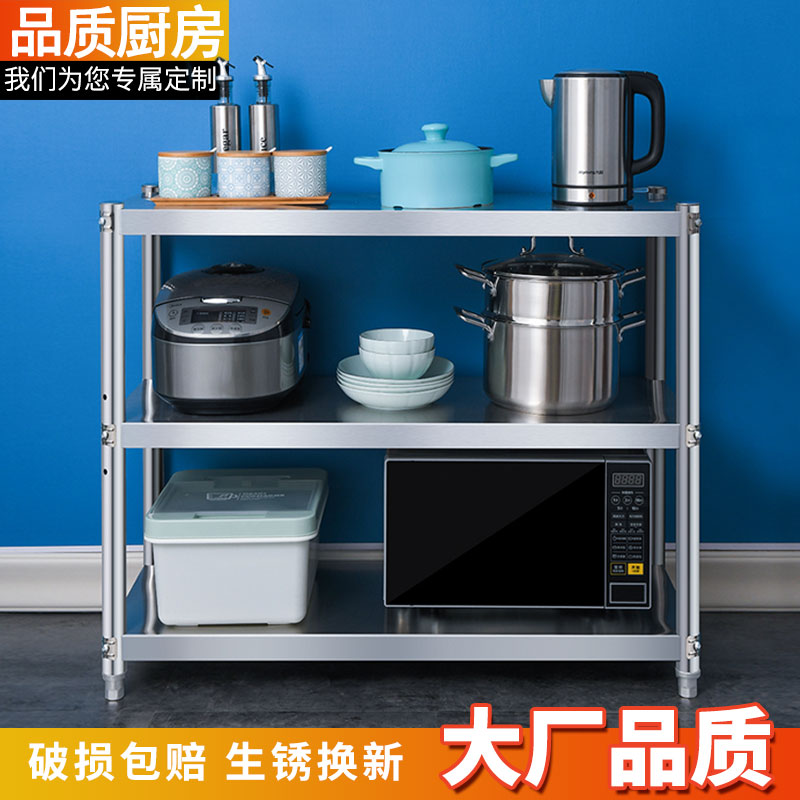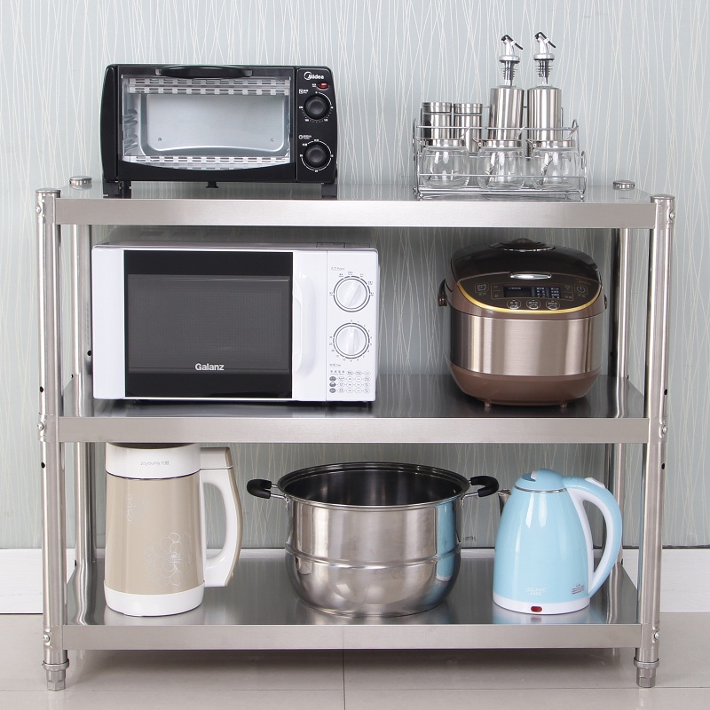 Kitchen rack three-layer stainless steel shelf microwave storage rack oven rack pot rack floor rack rack