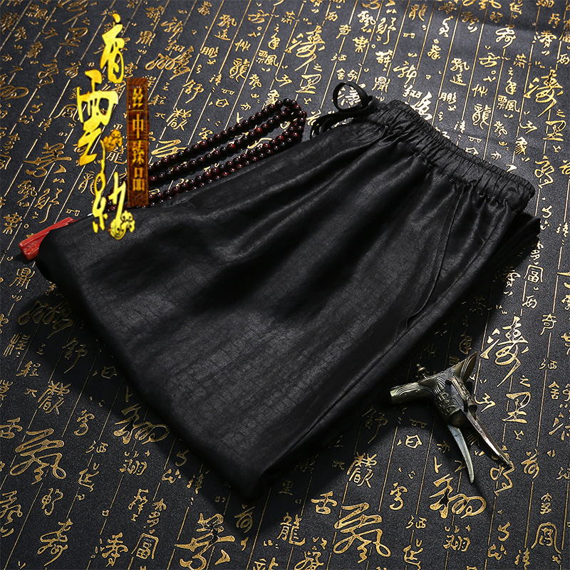 Summer Xiangyun yarn men's long pants Wild mulberry silk casual pants Elastic band loose large size straight silk men's pants
