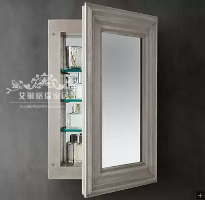 American retro old solid wood storage mirror makeup mirror Bathroom cabinet mirror storage wall cabinet multi-function storage mirror