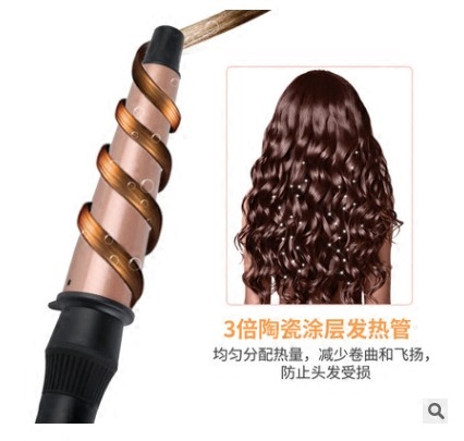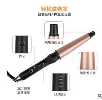 Cross-border New Curly Hair Stick 1-1 5 Inch Ceramic Curler Rose Gold Hairdressing Tool Send Gloves