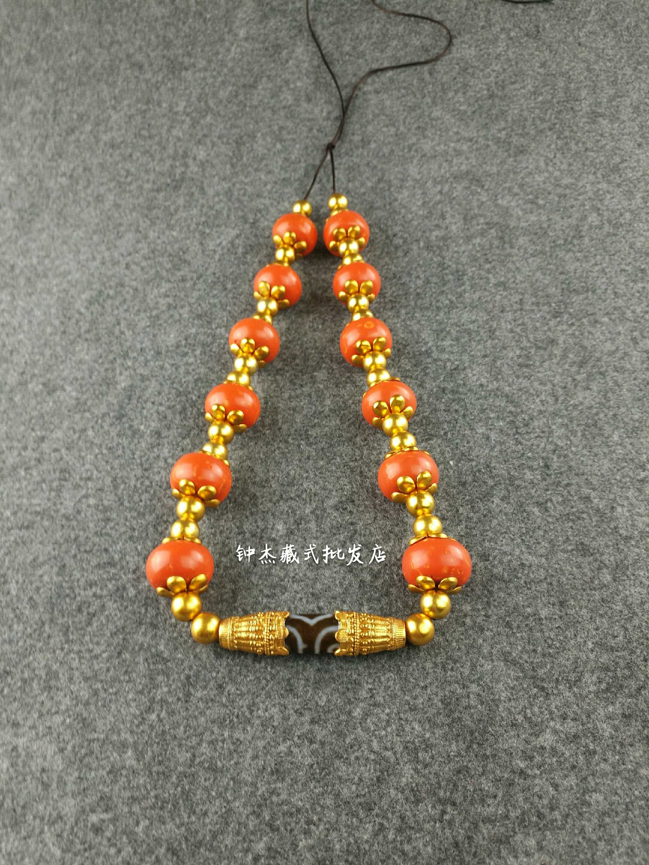 Men and women of the same style Nepalese Tibetan ethnic style new coral gold-plated nine-eye bead necklace pendant sweater chain