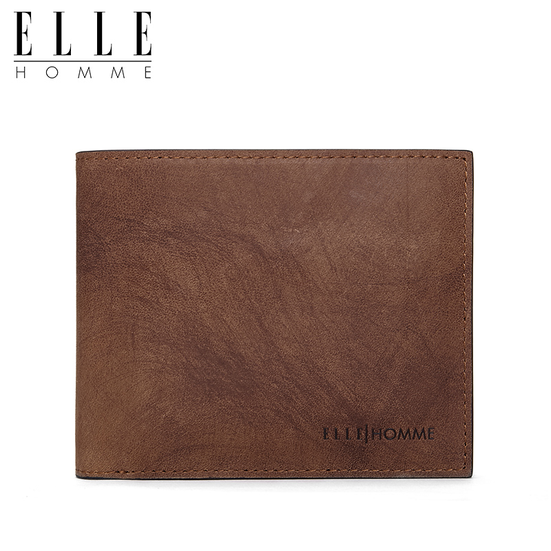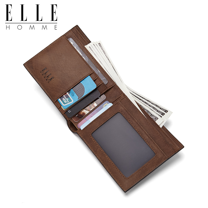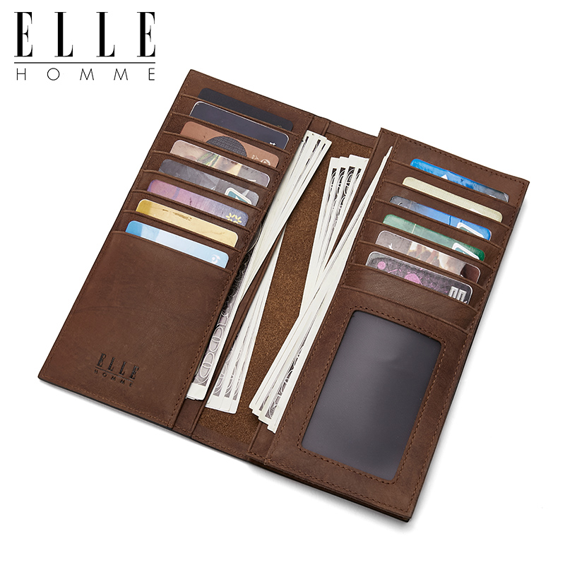 ELLE HOMME Genuine Leather Wallet Men Retro Bull Leather Money Clip Business Men's Leather Bag Casual Ticket Clip Large Capacity