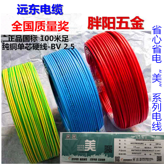 Far East Wire & Cable BV1 5 2 5 4 6 squared national standard single core hard copper core wire furniture lighting 100 m