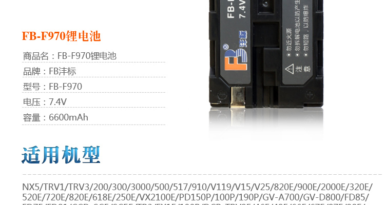 FB-Label NP-F970 battery suitable for Sony Z5C Z100 NX100 NX5R MC2500 MC2500 MC2500