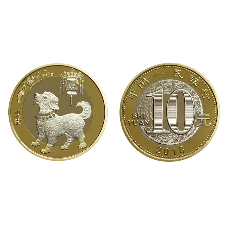 Dog Year Commemorative Coin 2018 Zodiac Dog Circulation Coin Dog Coin RMB10 Coin New Roll Demolition Pint Fidelity