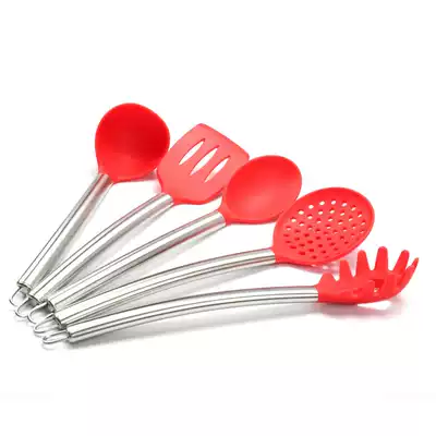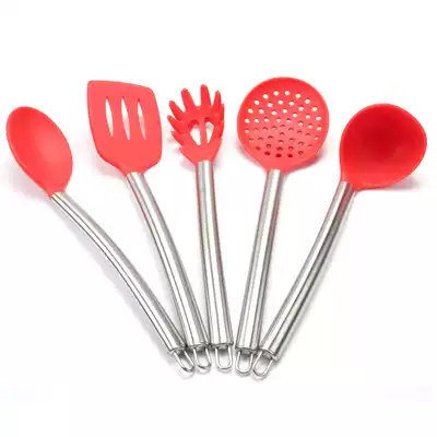Silicone one-piece red-spoon silicone one-piece red-Spatula Silicone one-piece red-leak shovel silicone one-piece red-leak more silicone-one-piece red-denser silicone integrated red-rice shovel stainless steel handle Red