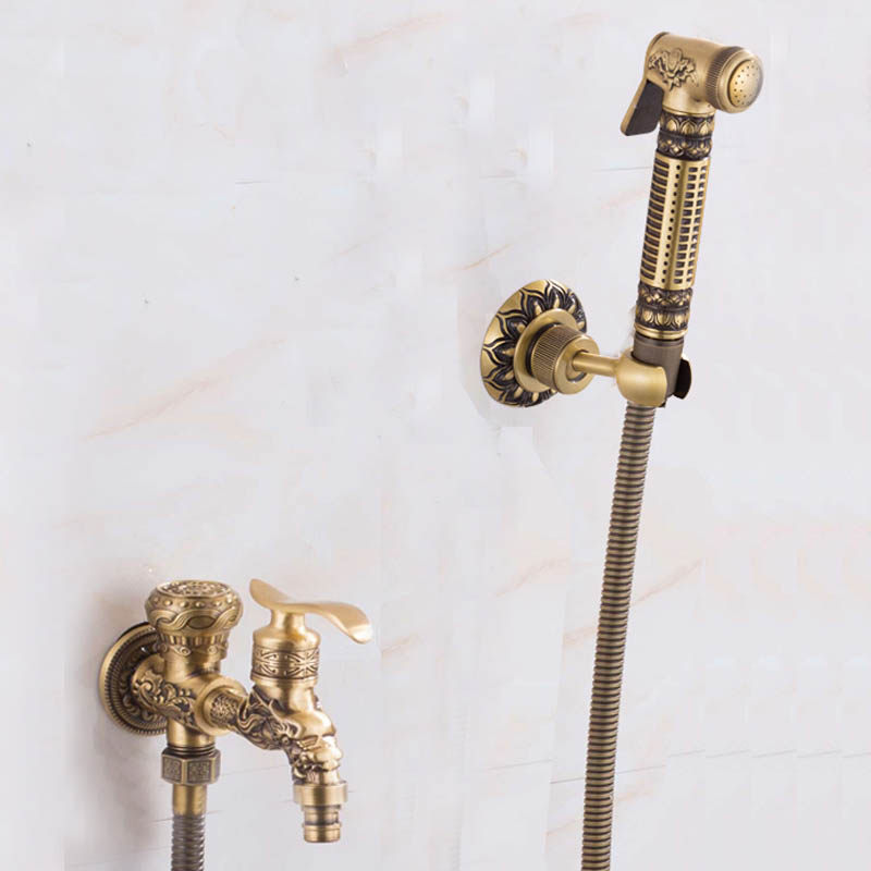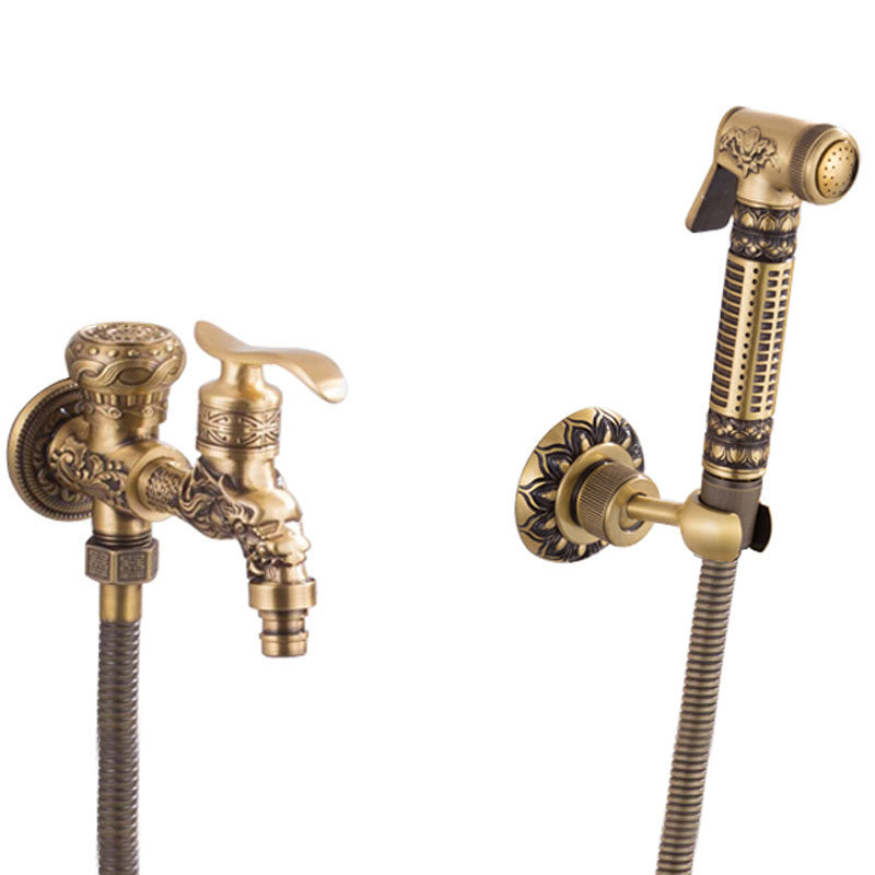 Antique copper spray gun Antique spray gun with tee can be connected to toilet golden copper spray gun golden spray gun with tee can be connected to toilet antique double-use angle valve spray gun can be connected to toilet dragon double-use spray gun can be used to drain water ordinary seat dragon double-use