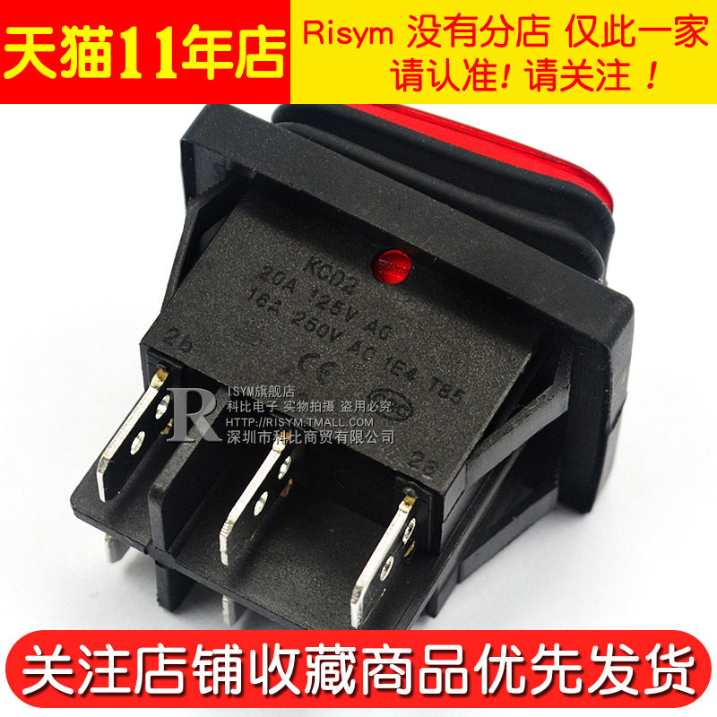 Waterproof rocker switch Boat-shaped RL2 KCD2-2X2N six-pin 2-speed red illuminated boat-shaped rocker switch