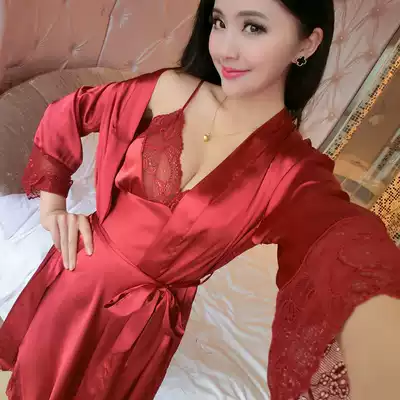 Sexy pajamas female summer Thin Ice Silk sexy lace lace lace spring and autumn winter suspenders nightgown two sets