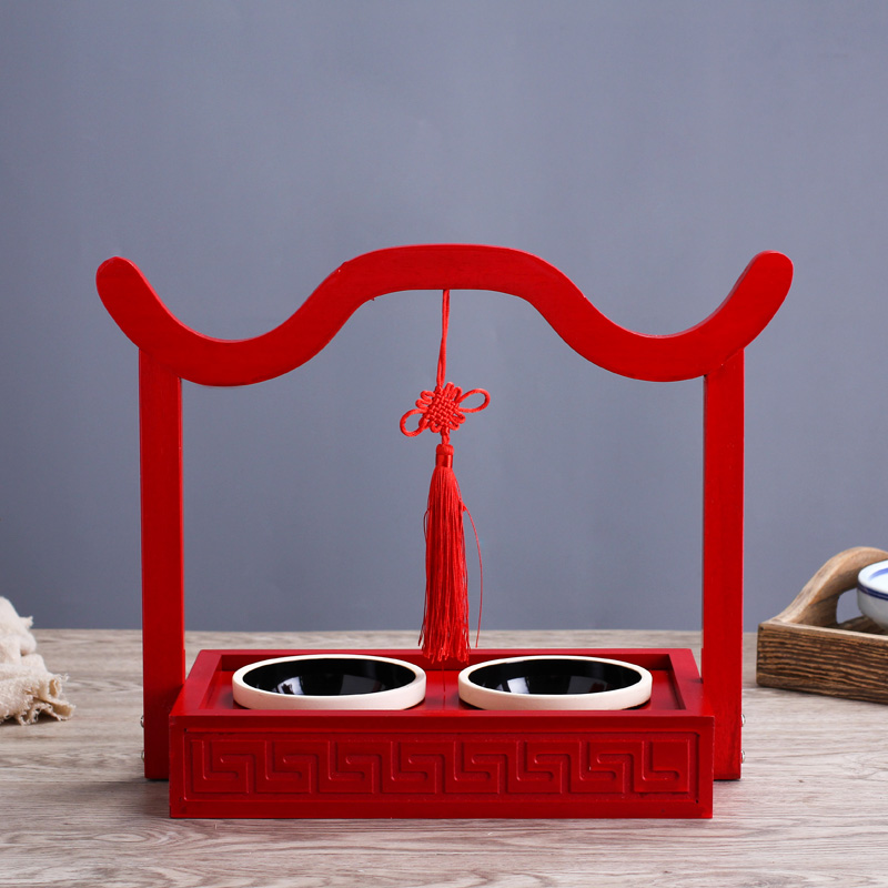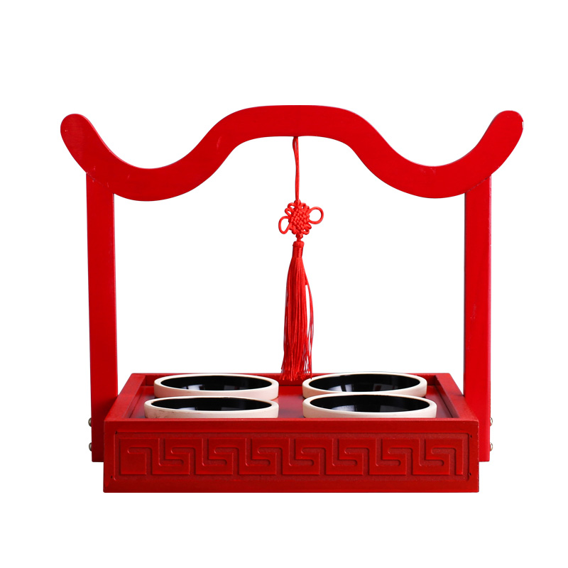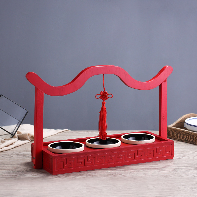 Hotel features creative tableware red wood four grid handcuff dining room Italian cuisine restaurant pavilion bamboo and wood tableware