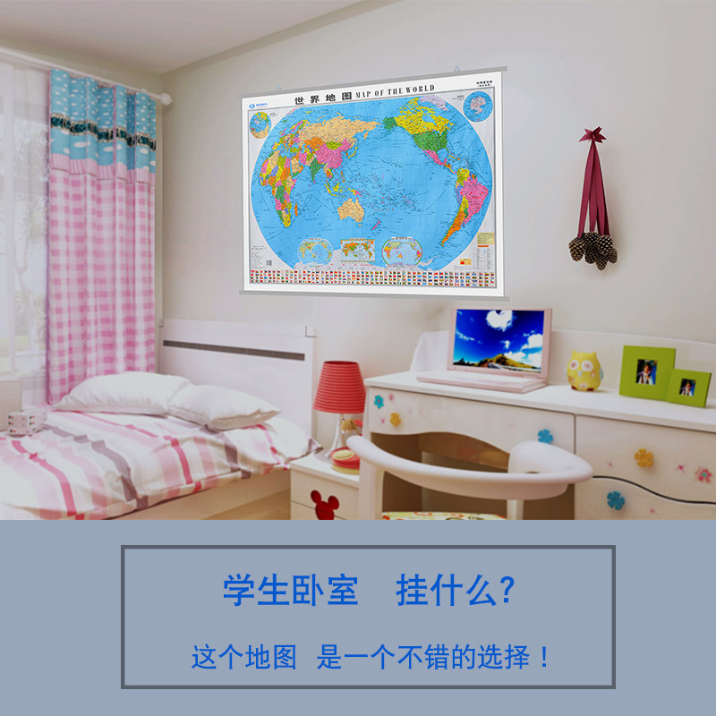 2020 New genuine world map wall chart 1 1m X0 8m HD waterproof students universal Chinese and English contrast matt film coated geography learning Home children's study