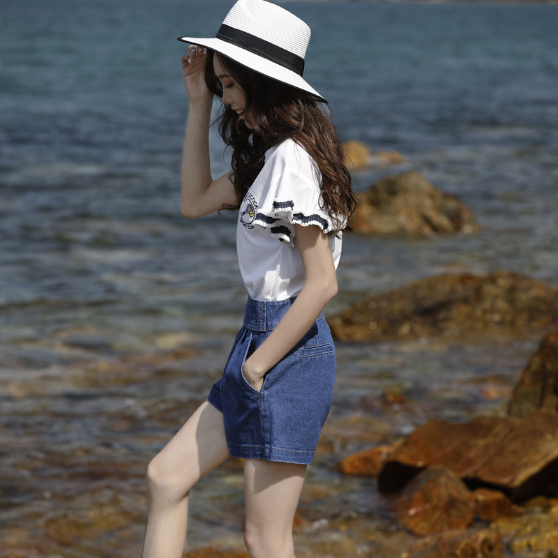 Denim shorts women's summer 2019 new Korean version of the high waist loose all-match A-word Harajuku wide-leg chic shorts hot pants