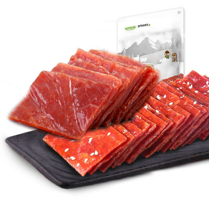Three squirrel pork and pork Jingjiang refined original taste snack small packaging natural slices snack 160g